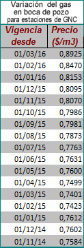 Desde el 1 de marzo, el precio del gas natural en el punto de ingreso al sistema de transporte destinado al suministro de gas natural comprimido en estaciones de servicio, aumenta a 0.8925 pesos por metro cúbico.
