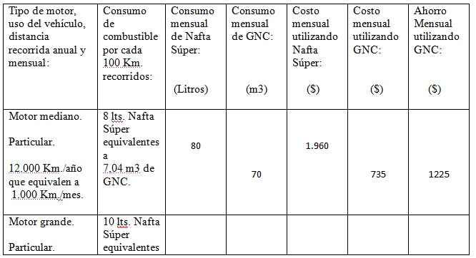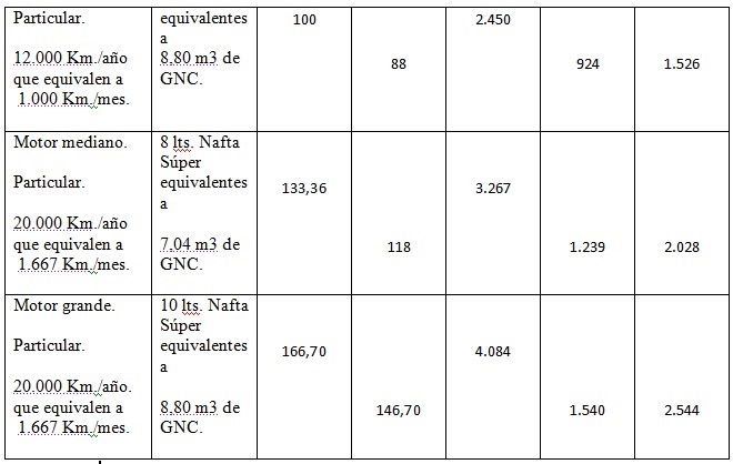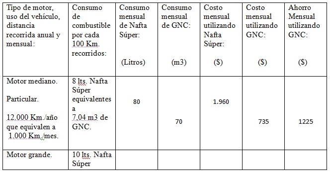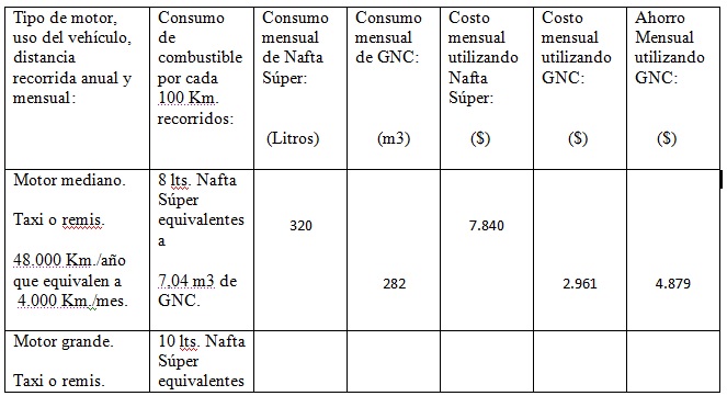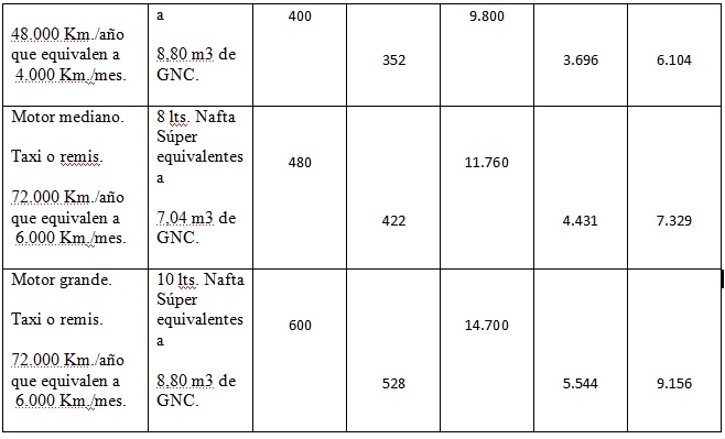 Por ejemplo un remisero que adquiera un vehículo nuevo con motor grande y lo utilice con GNC, si recorre 48.000 km./año durante 10 años ahorrará:
