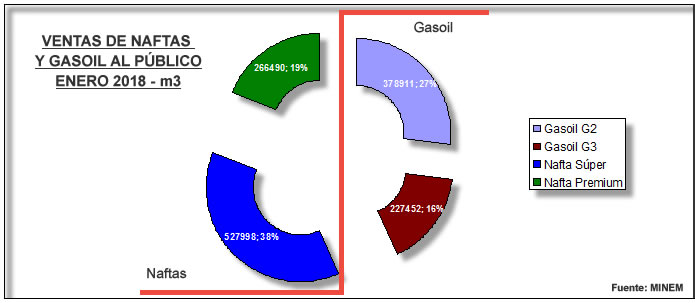 Como contrapartida, el Gasoil Grado 3, requerido por las unidades motrices modernas que necesitan imperiosamente de un combustible de mejor calidad, escaló 16.2 por ciento respecto a enero de 2017.