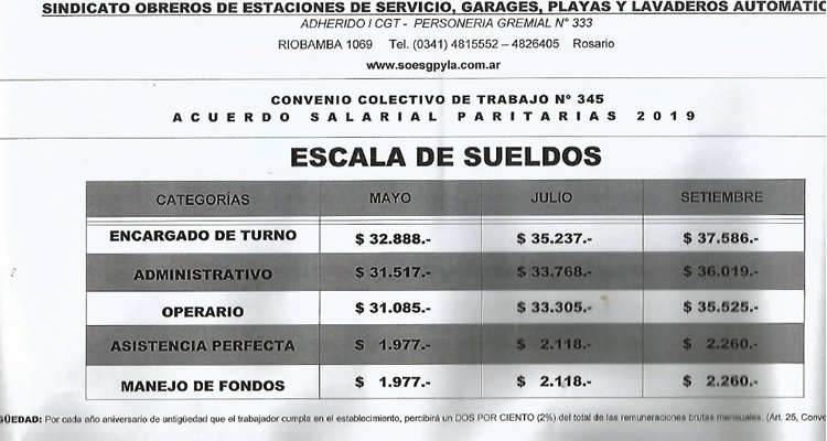 En consonancia con lo acordado por otras Cámaras empresarias, la Federación de Expendedores de Naftas de la provincia de Santa Fe (FAENI) y el Sindicato de Trabajadores (SOESGyPLA) convinieron los alcances de la nueva escalara salarial correspondiente al año 2019.