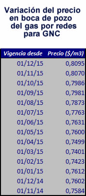Asimismo, a partir de diciembre el precio del gas natural en el punto de ingreso al sistema del GNC en estaciones de servicio será el de vigente hasta octubre “más la variación del precio promedio ponderado país (sin impuestos) en planta de la nafta súper sin plomo de más de 93 RON, informado durante el mes de noviembre, y así sucesivamente“.