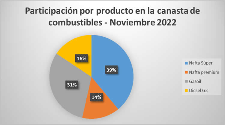 El producto de mayor demanda durante este período fue la nafta súper (39 por ciento), seguido del gasoil Grado 2 (30.83 por ciento), el diésel G3 (15.63 por ciento) y la nafta G3 (14.54 por ciento).