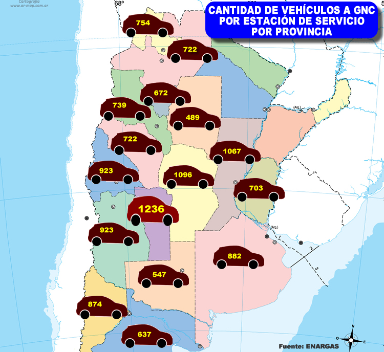 Otras referencias que siguen esta regla son Córdoba, con 1096 autos por estación; Formosa, con 1.067 y Mendoza, 923. El promedio país es de 877 por cada comercio y el consumo mensual de 119 metros cúbicos por vehículo.
