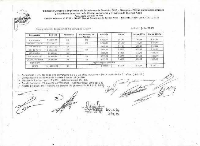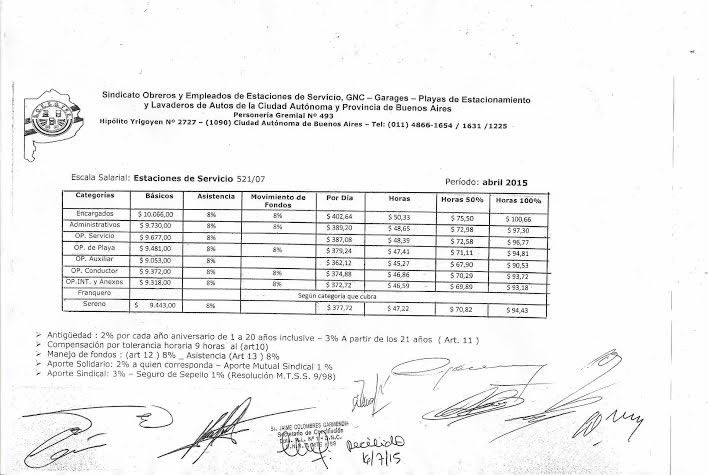 Ahora, la cartera laboral le dio curso a la grilla salarial del Año 2015 correspondiente al CCT 521/07 de la Federación de Empresarios de Combustibles de la República Argentina (FECRA). El mismo fue homologado el 30 de julio pasado por la D.R.N.T. Nº387/15, no obstante aun resta su publicación en el Boletín Oficial.