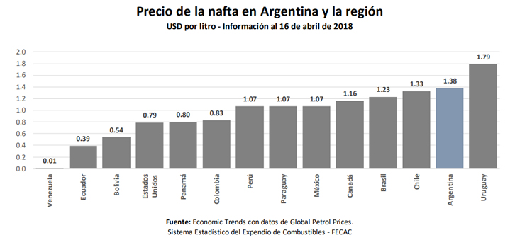 Los datos finales del análisis especializado, arrojan la confirmación de que la Argentina tiene el segundo precio por litro medido en valor dólar más caro de la región tanto en naftas como en gasoil, siendo superada únicamente por Uruguay.