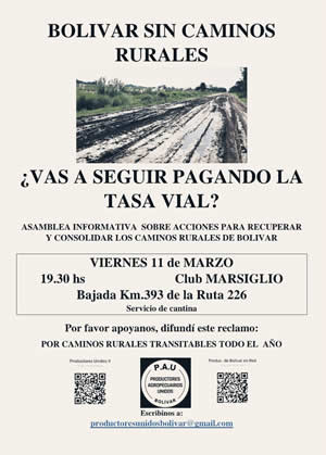 Un grupo de productores agrícolas, indignados con el mal estado de los caminos de la zona, denunciaron que “lo que nos cobra el gobierno municipal en concepto de Tasa Vial para arreglo y construcción de rutas, evidentemente va a parar a otros gastos”.