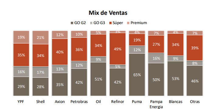 Respecto al mix de productos, la nafta súper es el derivado más vendido por las tres principales compañías, aunque Shell es la que más combustibles Premium vuelca al mercado. El resto se enfoca más en el gasoil, siendo Puma su máximo referente.