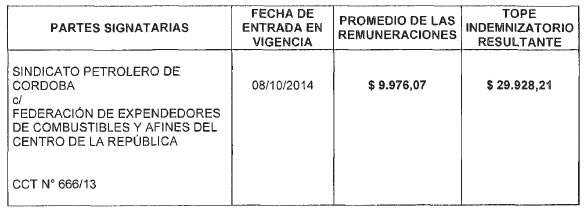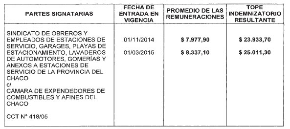 El Ministerio de Trabajo, fijó a través de diversas disposiciones publicadas en el Boletín Oficial, el importe promedio de las remuneraciones y el tope indemnizatorio correspondiente a los operarios enmarcados en los Convenios Colectivos de la Federación de Expendedores de la provincia de Córdoba y del Chaco