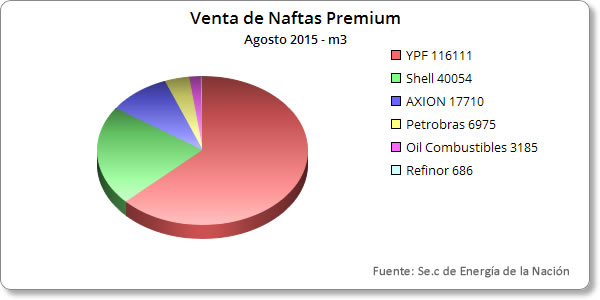 El market share de este segmento es dominado ampliamente por YPF con un 63 por ciento de las ventas en los surtidores, en tanto que el segundo puesto le corresponde a Shell con el 21,6 mientras que AXION completa el podio con el 10.
