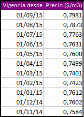 Mediante Nota N° 643 de fecha 28 de octubre de 2014, la Dirección Nacional de Economía de los Hidrocarburos dependiente de la Secretaría de Energía, concluyó sobre la necesidad de fijar un mecanismo que permita la modificación del precio del gas natural en el punto de ingreso al sistema de transporte destinado al suministro de gas natural comprimido en estaciones de servicio.