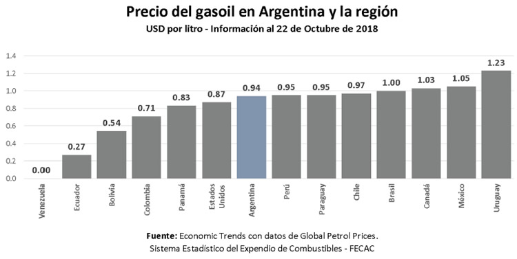 Según consigna un informe elaborado por la consultora Economic Trends para la Federación de Expendedores del Centro de la República (FECAC), los combustibles superaron ampliamente el Índice de Precios al Consumidor