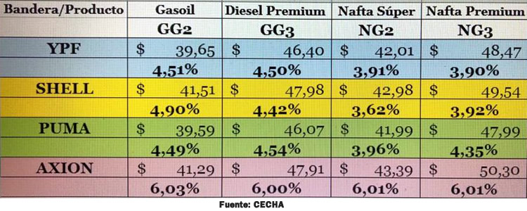 De este modo, la ex Esso dispuso la rebaja del 2.6 por ciento en las naftas 1.4 en el diésel y 2 por ciento en el gasoil Premium.