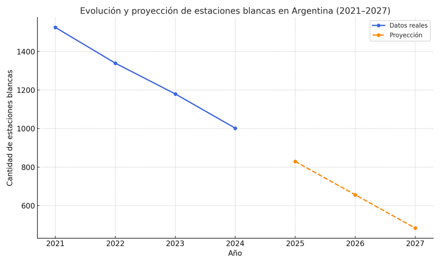 La red de estaciones blancas en Argentina –aquellas que no operan bajo contratos exclusivos con petroleras– continúa reduciéndose, presionada por la inestabilidad macroeconómica, la volatilidad de los precios y la creciente competencia de las grandes marcas. Según datos oficiales de la Secretaría de Energía, en 2021 existían 1526 establecimientos de este tipo en todo el país; hoy quedan unas 1002, lo que representa una caída cercana al 20 por ciento.