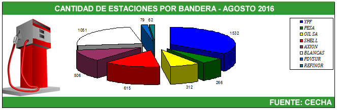 Un informe realizado por la Confederación Argentina del Comercio de los Hidrocarburos (CECHA), chequeado con las distintas banderas que operan en la plaza, revela que en Argentina existen 4423 bocas de expendio, sumando las de naftas, gasoil y GNC.