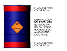 Para su reconocimiento, los tambores deben estar perfectamente identificados, con dos franjas de color rojo de 10 centímetros de alto que circunscriba al recipiente, situados en ambos extremos del tambor y en la parte media, un panel romboidal, característica que identifican a los combustibles líquidos, de 15 centímetros de lado, de color naranja, donde deben figurar el Nº de Riesgo correspondiente, que para el caso de gas oil es el 30 en la parte triangular superior y en la parte inferior, el Nº de Naciones Unidas que identifica al producto, en este caso el 1202, para que en caso de emergencias durante su transporte, los equipos de auxilio tengan conciencia del producto peligroso que se trata, que permita una actuación eficiente y eficaz.