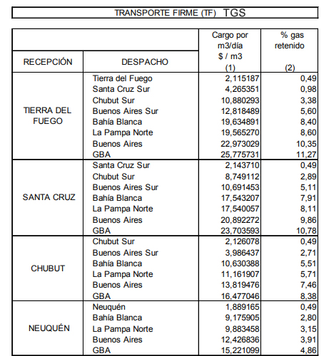 El Ente Nacional Regulador de Gas dio a conocer el nuevo cuadro tarifario correspondiente a las Transportadoras Gas del Norte SA y del Sur SA, que comenzarán a regir desde el 1º de octubre.