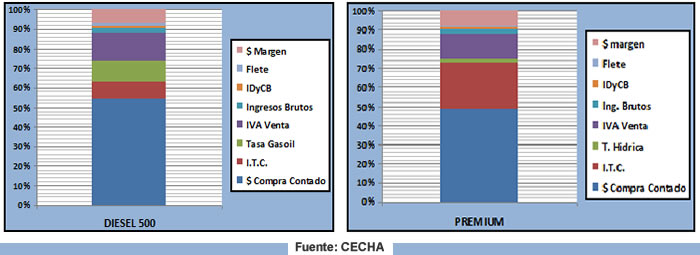 Un estudio elaborado por la Confederación de Entidades del Comercio de los Hidrocarburos (CECHA) analiza la composición del valor del litro de combustible, en base a las cifras que se manejan en Capital Federal. Se hizo un promedio de las marcas existentes en la plaza.