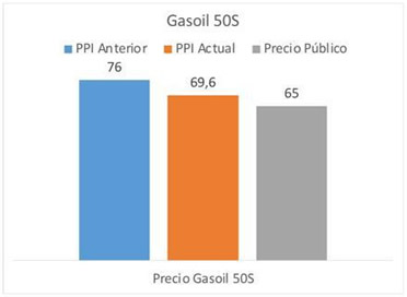 En el caso del gasoil 50S -que se mantendrá en $ 65 por litro-, la diferencia es de $ 4,6 respecto a los $ 69,60 que marcó el promedio del PPI en el período entre el 26 de junio y el 25 de julio.