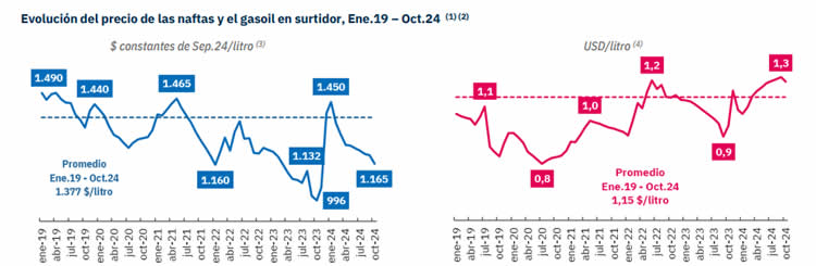 Sin embargo, este abaratamiento no significa que el valor del crudo haya caído en dólares en el mercado interno; al contrario, el precio de los combustibles medido en dólares sigue siendo hasta un 25 por ciento alto que el promedio registrado en el período entre enero de 2019 y diciembre de 2023.