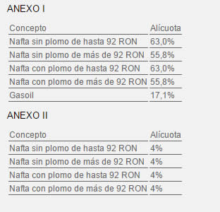 El Decreto 2579/2014 publicado hoy en el Boletín Oficial, dispuso disminuir para determinados productos gravados, entre un 10 y un 20 por ciento las alícuotas de las naftas que se comercializan en el país. El texto completo de la normativa
