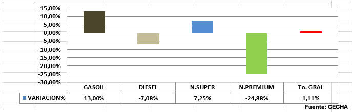 En definitiva, la estadística oficial revela que la distribución de naftas en Estaciones de Servicio decayó 2.96 por ciento, mientras que la de gasoil escaló 5.91.