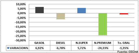 Otro de los productos que traccionó la mejora fue la nafta súper con un alza en los despachos del 7.25 por ciento, aunque en este caso el dato disimula un efecto adverso que se origina en los surtidores: el de la brutal caída de la nafta Premium, que durante este período alcanzó el 24.88 por ciento. Algo similar sucedió con el diésel de mayor calidad, que retrocedió 7.08 por ciento.