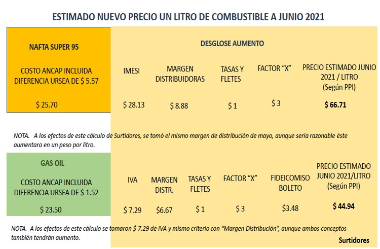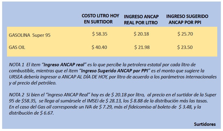 PPI por encima de costos de ANCAP más factor “X” en combustibles, llevarían la Nafta Super a $ 66.71 y al Gas Oil a $ 44.94 – Surtidores.com.ar