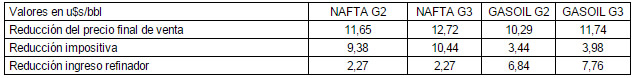 El aporte que el refinador hace para la reducción del precio final de ventas resulta de 2,27 u$s/bbl para las naftas y entre 6,84 y 7,76 para el gasoil. ¿Por qué se produce esta diferencia si ambos productos bajan el mismo porcentual? “Por las alícuotas de los impuestos que son muy distintas”, precisa el ex funcionario. “El Estado contribuye mucho más con la disminución del valor de las naftas (80 por ciento), mientras que en el gasoil el que ajusta más es el refinador (67)”.