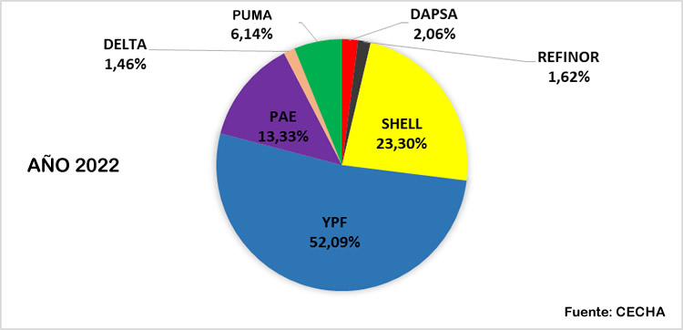 Los datos oficiales destacan que YPF mantuvo más del 50 por ciento del mercado desde 2018 a la fecha, mientras que Shell, DAPSA y Trafigura fueron las de mayor crecimiento en los últimos años.
