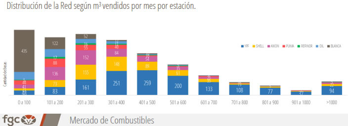 Según un informe realizado por la consultora FGC, la mayoría de las Estaciones de Servicio del país se encuentra por debajo de este caudal de ventas. El peor escenario lo atraviesan las Blancas debido a que cuentan con abastecimiento deficiente y precios fuera de mercado, impidiéndoles competir con aquellas que mantienen relación contractual con una petrolera.