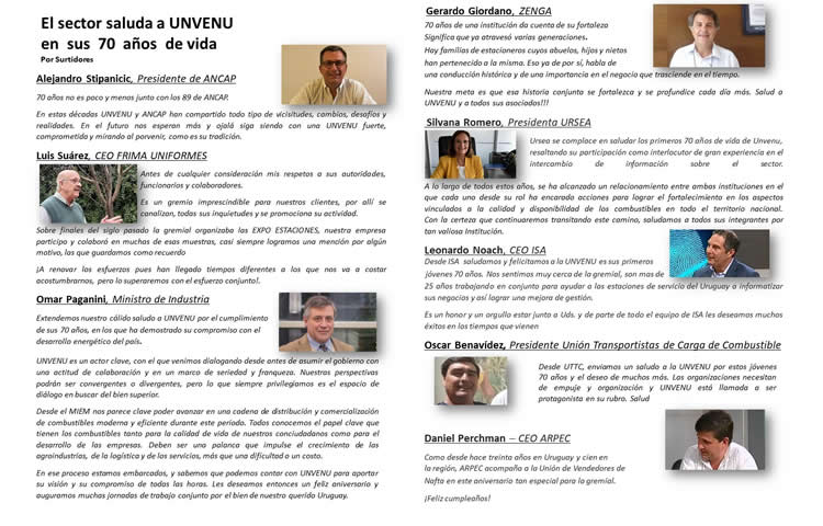 El próximo domingo la Unión de Vendedores de Nafta del Uruguay – UNVENU, estará cumpliendo 70 años de vida. Para Daniel Añón actual presidente de la gremial, la fecha tiene una doble significación, en la medida de que -además de encontrarlo ejerciendo la presidencia- su abuelo fue uno de los fundadores.