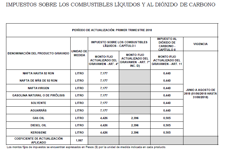 Se publicó en el Boletín Oficial la Resolución General 4257 que establece el procedimiento. De actualización de importes del Impuestos sobre los Combustibles Líquidos y al Dióxido de Carbono.