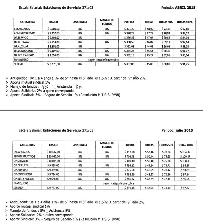 Son los correspondientes a la Confederación de Entidades de los Hidrocarburos (CECHA) y los de la Federación de Expendedores de Naftas del Interior (FAENI). En ambos se acordó un adicional no contemplado en los convenios anteriores